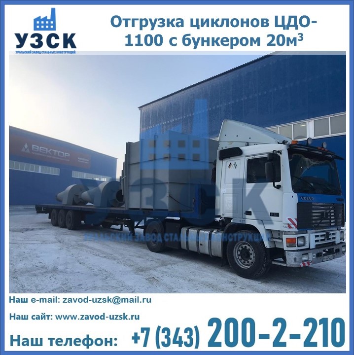 Циклоны ЦДО-1100 с бункером на 20 кубов были отгружены в декабре 2018 года в г. Новосибирск Евпатория.