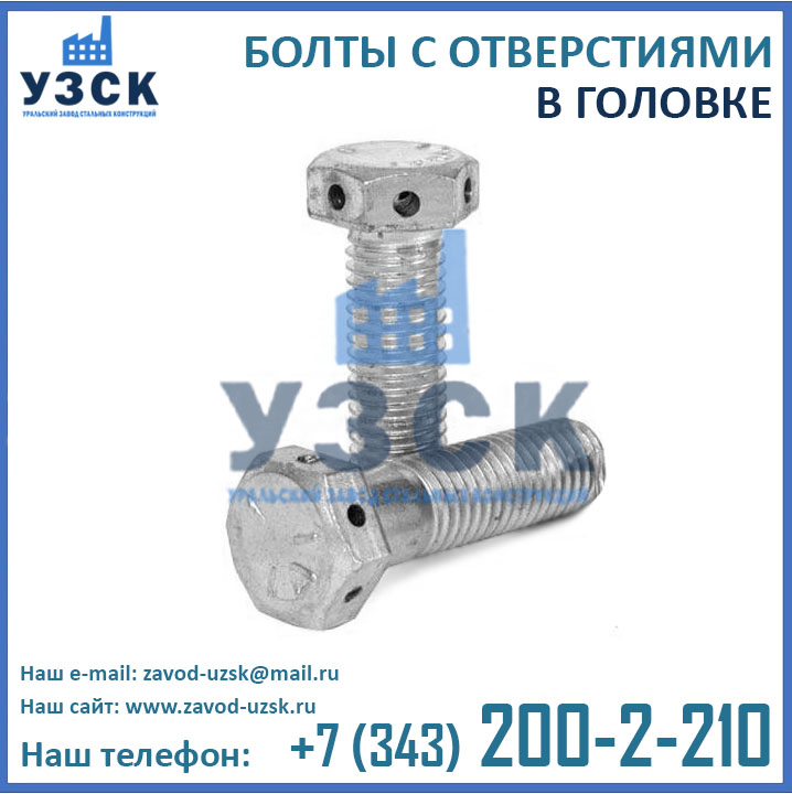 Уральским Заводом Стальных конструкций налажено производство болтов с отверстиями всех типоразмеров от М10 до М42 следующих модификаций: