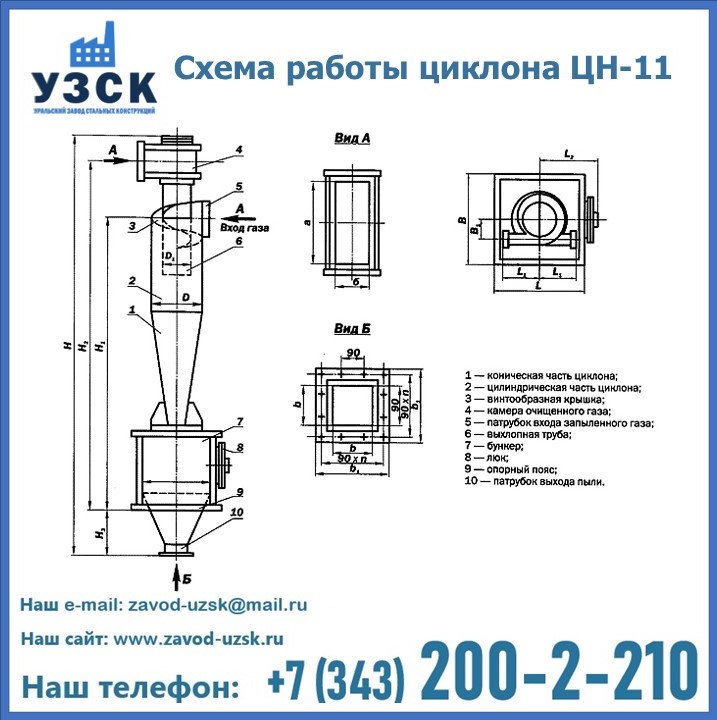 При этом ощутимой разницы в цене между универсальным и узконаправленным, подобранным в соответствии с конкретными техническими требованиями циклоном, нет. Стоимость воздухоочистительного оборудования типа циклон обусловлена маркой и толщиной стали, из которого он изготовлен, сложностью и специфичностью конструкции, наличием дополнительного оснащения (бункер, улитка и другие). При необходимости, на заводе УЗСК в Евпатории будет изготовлен циклон по индивидуальным техническим чертежам заказчика.