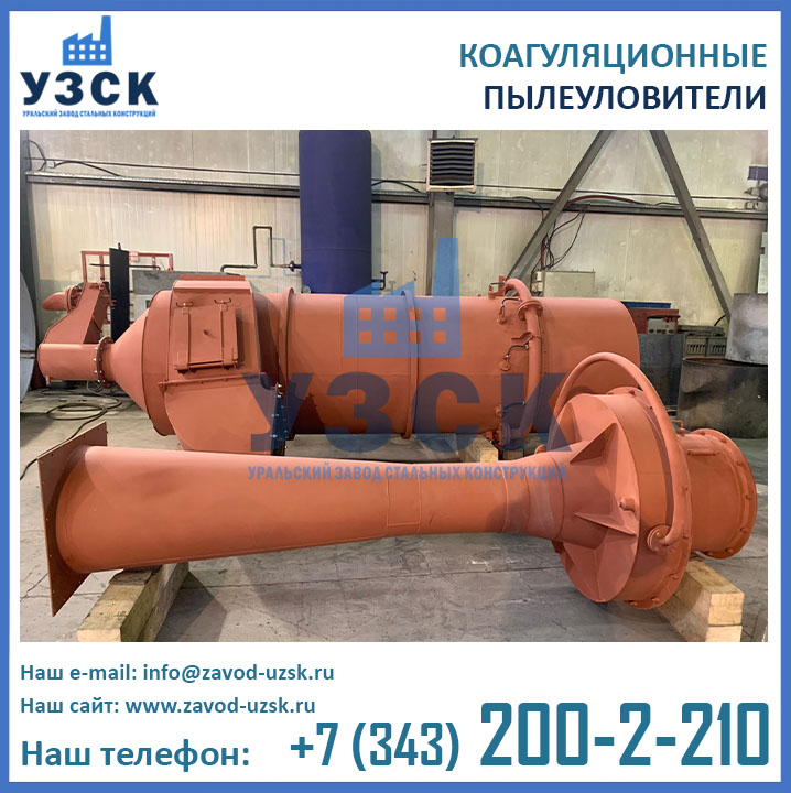 Труба-коагулятор имеет сварной корпус (включает в себя воздушно-подводящий патрубок, конфузор, горловину и диффузор), форсунку (оборудована водоподводящей трубой), а также водяную камеру для пленочного орошения внутренней поверхности конфузора. Основной объем воды подается через форсунку с отбойником, размещенную по оси трубы. Для удобства проведения контроля и ревизий соединение форсунки с трубой сделано легкоразъемным.