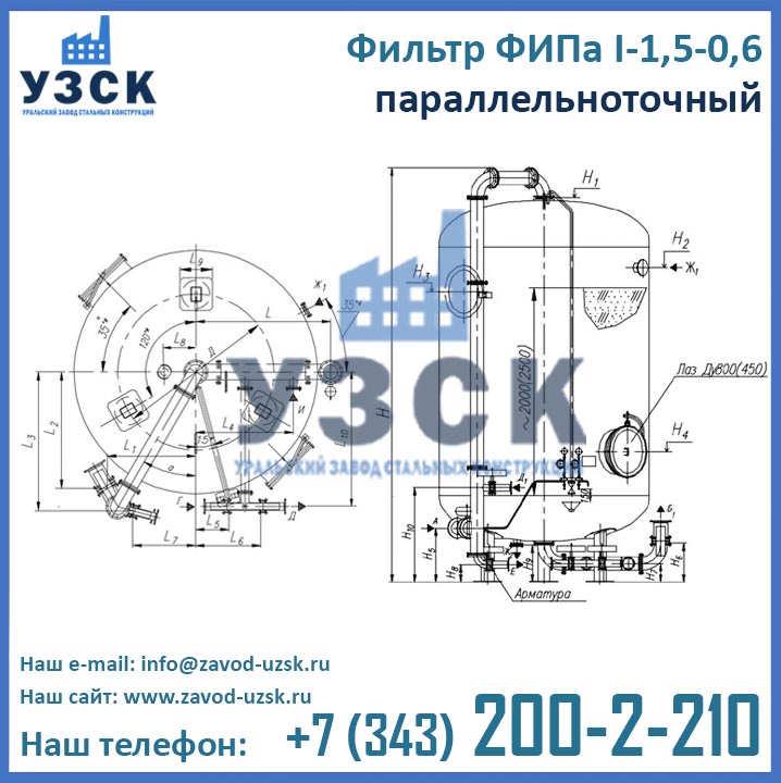 Уральский Завод Стальных Конструкций – ведущий производитель фильтрационного оборудования, осуществляющий изготовление параллельноточных фильтров ФИПаI 1,5-0,6 в соответствии требованиями ГОСТ. Получить консультацию по подбору оборудования, уточнить актуальные цены фильтров ФИПа I 1,5-0,6 в Евпатории и сроки их изготовления, запросить технические характеристики и сертификационные документы Вы можете, связавшись с менеджерами отдела продаж завода УЗСК по координатам, указанным в разделе «Контакты». Если Вы уже определились с выбором и хотите купить фильтр ФИПа I ступени очистки прямо сейчас, заполните форму онлайн заказа размещенную ниже.