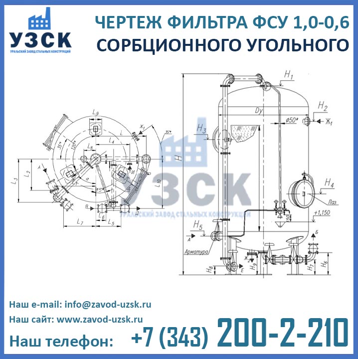 Наш завод (Уральский завод стальных конструкций) является производителем угольных фильтров, сам осуществляет изготовление и реализацию выпускаемой продукции. Приобретая фильтры ФСУ-1.0-0.6 в Евпатории от производителя, Вы приобретаете оборудование без наценок всевозможных посредников, а также значительно экономите свое время. Фильтры ФСУ1.0-0.6 завода УЗСК – это гарантия качества, кратчайшие сроки изготовления и цена, которая Вам понравится.